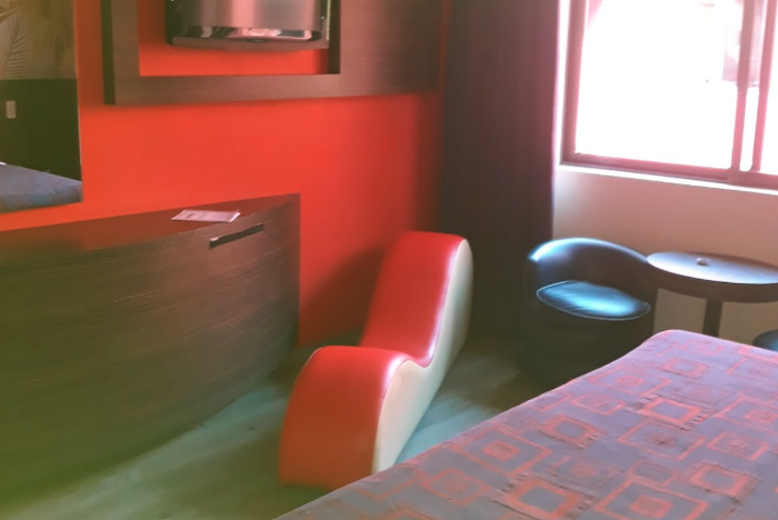 Televisión de pantalla plana con canales por cable, aire acondicionado, teléfono, baño privado, agua caliente, jacuzzi y sillón del amor.